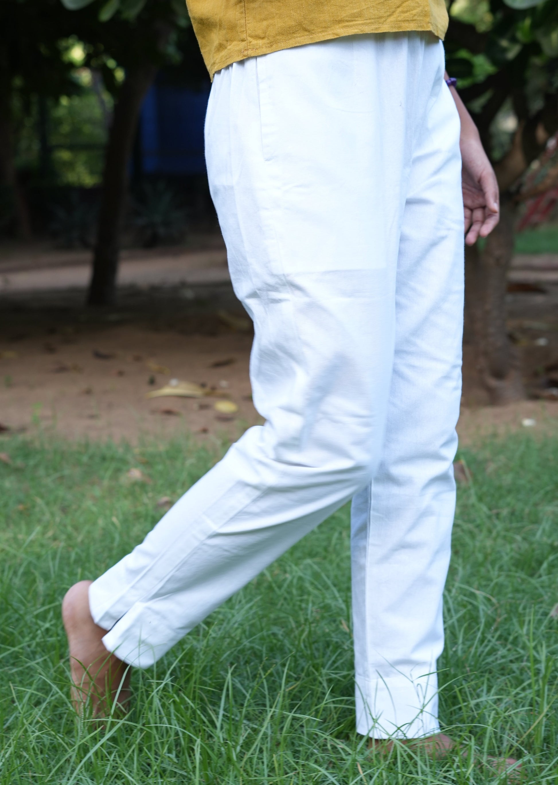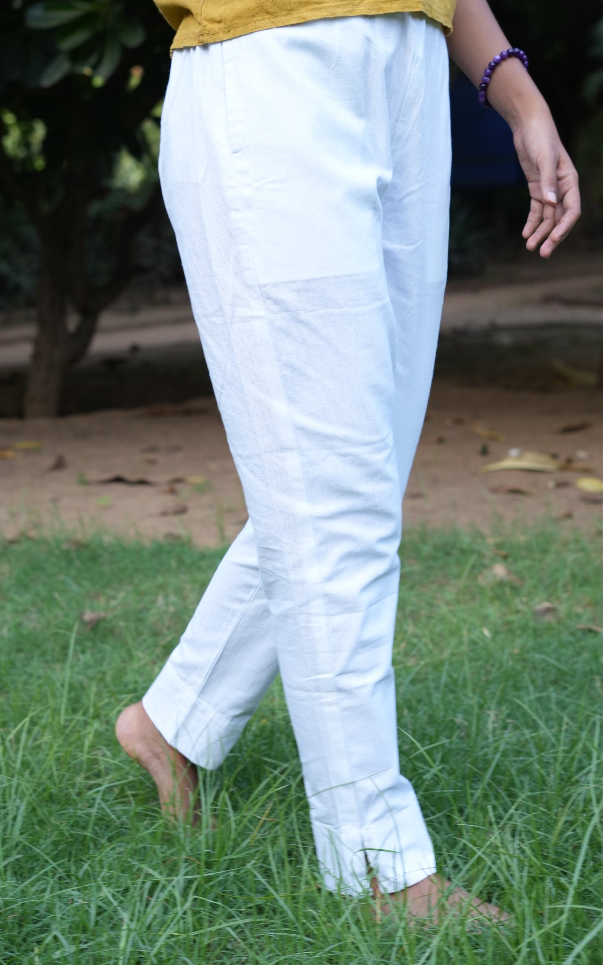 Step into a fresh start with our Aarambh Trousers, thoughtfully crafted from 100% pure cotton for unmatched comfort and breathability. Designed for the woman who values simplicity and grace, these slim-fit trousers offer a clean silhouette, soft touch, and everyday ease.
